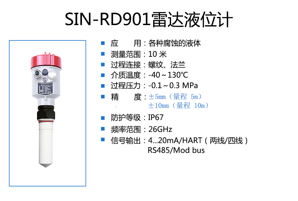 聯測_SIN-RD901雷達液位計_適用于各種腐蝕的液體_